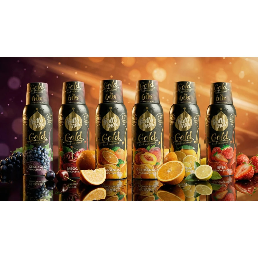 FruttaMax Gold meggy gyümölcsszörp – 60% meggy, csak kristálycukorral, 1:7 hígítással.